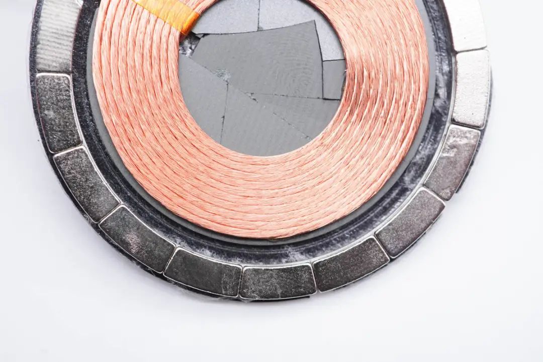 圓形外殼下有磁鐵環(huán)和無線充電線圈。
