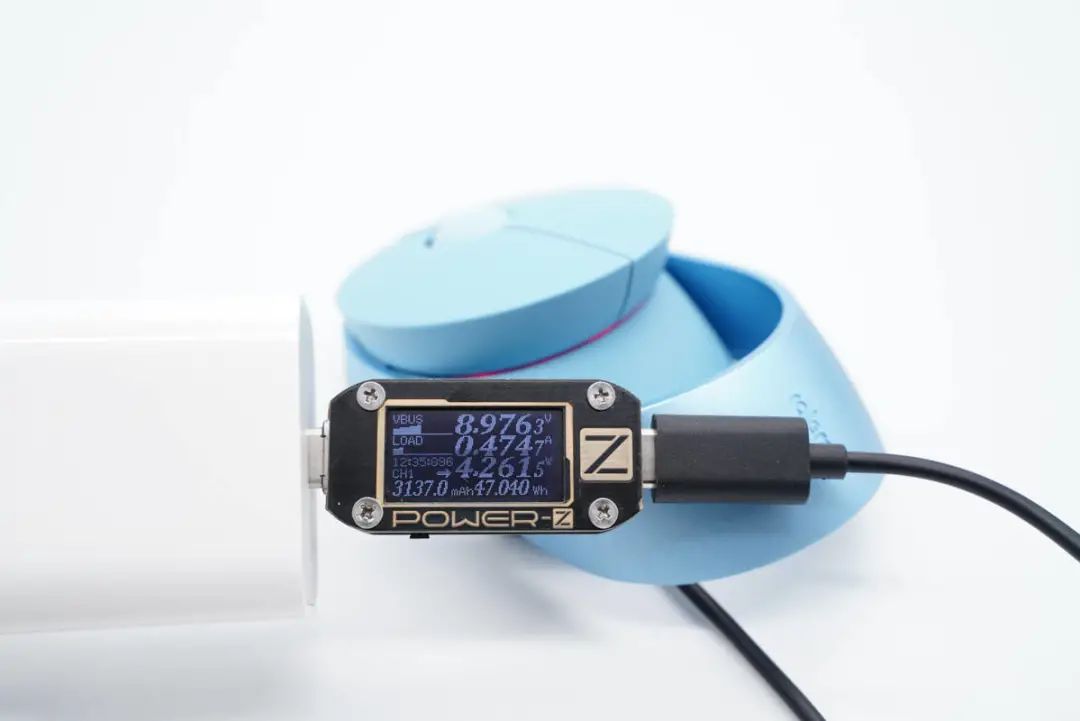 使用ChargerLAB POWER-Z KM001C可以測(cè)得此時(shí)無(wú)線(xiàn)充電輸入功率為8.98V 0.47A 4.26W。