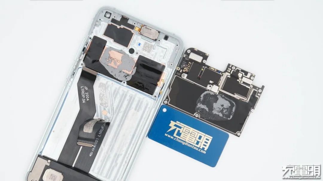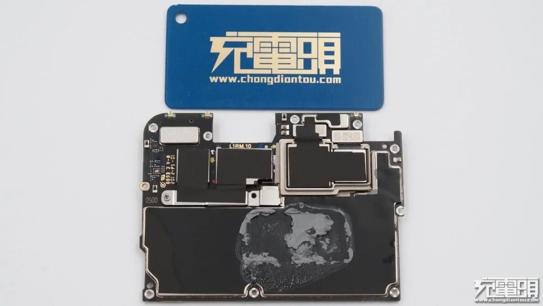 電池和主板之間為插座可拆卸設(shè)計,組裝方便,也方便后面對電池進行更換等服務(wù),同時電池保護板背面與鋁合金中框之間還有一條導(dǎo)熱硅膠,在高速充電時可為保護板散熱,降低溫升。