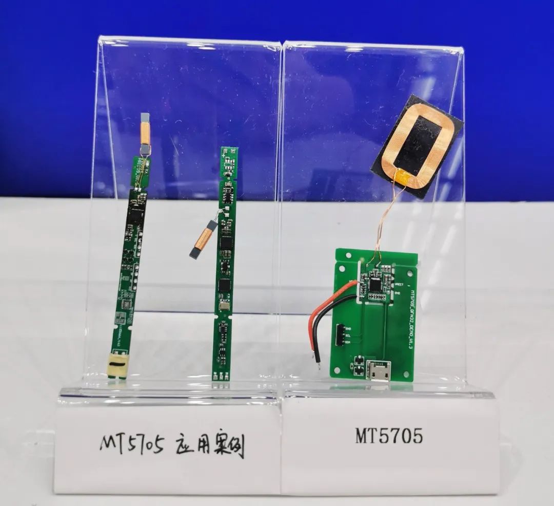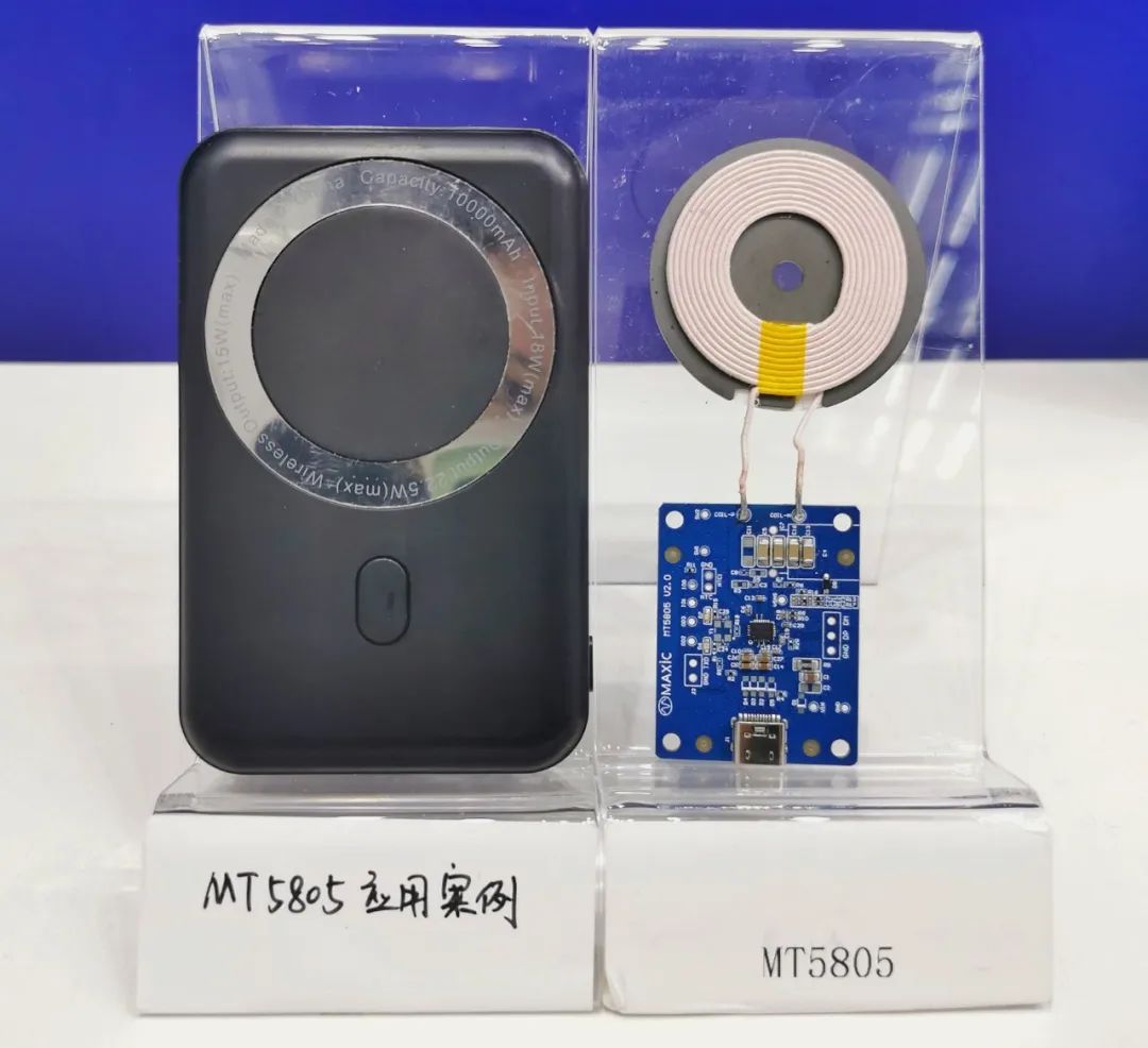 發(fā)射端芯片,為大家?guī)砹?/span>全集成、超低功率、高精度的MT5805,并在現場準備了內置MT5805的磁吸充電寶(自啟動應用,速度更快,功耗更低),以便廣大客戶可以更加直觀地感受該芯片的實際應用效果。