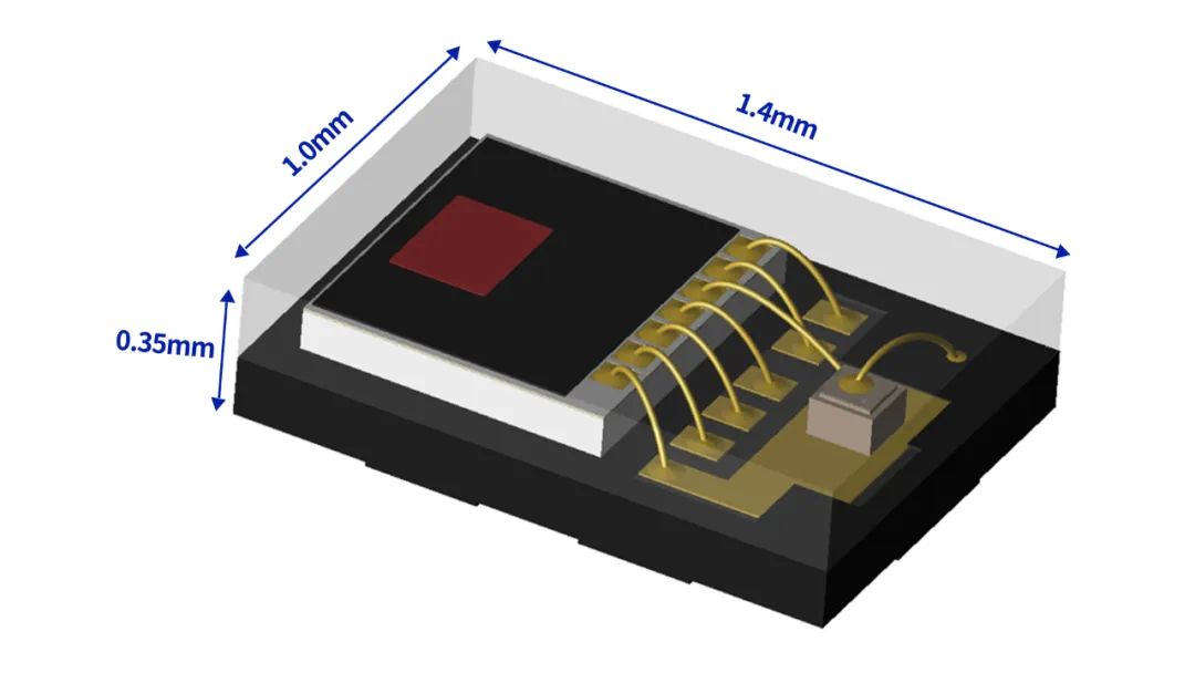 新一代MT3102光學(xué)接近傳感器集成紅外光接收器、激光發(fā)射器、I2C接口、高精度ADC和可編程低噪聲放大器,封裝于微型LGA6內(nèi),尺寸為1.4mm*1.0mm*0.35mm,體積縮小至前代產(chǎn)品的16%,是目前業(yè)內(nèi)最小的產(chǎn)品尺寸。